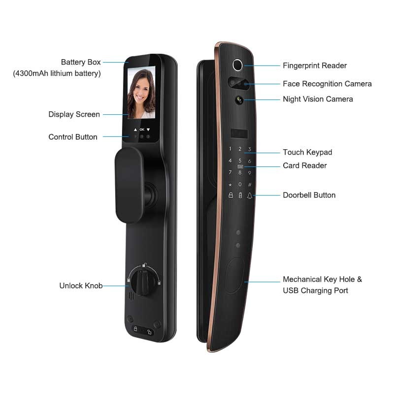 | Tipo | Cerradura elegante de cristal de Tuya de la cerradura de puerta del negro de la huella dactilar de Digitaces de la cara de la seguridad en el hogar 3D |